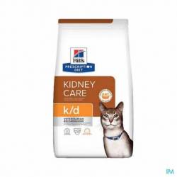 Les croquettes pour chat Hill's Prescription Diet k/d avec poulet sont des aliments diététiques complets destinés à soutenir la fonction rénale en cas d'insuffisance rénale chronique ou temporaire chez le chat adulte. Cet aliment est pauvre en phosphore et limité en protéines, mais il contient des protéines de haute qualité.