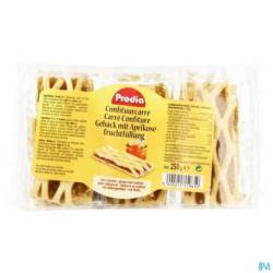 Ingrédients : Confiture d'abricot avec édulcorant 44 % (maltitol, abricots 30 %, épaississant : polydextrose, fibres, gélifiants : pectine, hydroxypropyl distarch phosphate, correcteurs d'acidité : acide citrique, citrate de sodium, arôme, conservateur : sorbate de potassium), farine de BLÉ, margarine (huiles et graisses végétales (palme, colza, en proportions variables), eau, sel 1,5 %, émulsifiant : mono- et diglycérides d'acides gras, arômes, acidifiant : acide citrique, colorant : carotène), eau, farine de SOJA, sel, conservateur : sorbate de potassium.