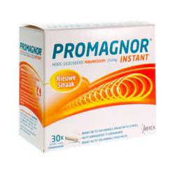 Promagnor® Instant est un supplément contenant du magnésium (350mg). Chaque stick de Promagnor Instant contient 350 mg de magnésium sous la forme d'une poudre très fine qui fond sous la langue en quelques secondes et est ensuite avalée. Promagnor Instant peut être pris sans liquide. Une fois que la poudre commence à fondre, un agréable goût de citron apparaît. Le magnésium contribue à une fonction musculaire et nerveuse normale, au maintien d'un bon métabolisme énergétique et vous aide à réduire la fatigue.