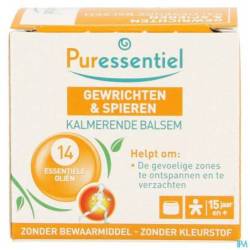 - Ce baume apaisant pour les articulations et les muscles Puressentiel n'est pas recommandé pour les enfants de moins de 15 ans, les femmes enceintes ou allaitantes, les personnes ayant des antécédents de convulsions ou d'épilepsie, les personnes allergiques aux salicylates.