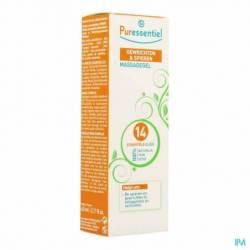 14 HUILES ESSENTIELLES :Cajeput, Camomille Romaine, Clou de Girofle, Eucalyptus, Gaulthérie couchée, Genévrier, Lavandin, Marjolaine, Menthe poivrée, Niaouli, Noix de Muscade, Pin, Romarin, Térébenthine, aux propriétés relaxantes.