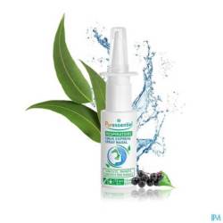 Formule d'origine naturelle à 99,4% : Eau, glycérol (26%), hydroxypropylcellulose, rhinocyanidine (dérivé d'extraits de : Thé vert (Camellia sinensis - feuille), Myrtille (Vaccinium myrtillus - baie), Airelle (Vaccinium macrocarpon - baie) et Sureau noir (Sambucus nigra - baie)) ; Huiles essentielles EOBBG* : Eucalyptus globulus (Eucalyptus globulus), Menthe poivrée (Mentha piperita), Thym à thymol (Thymus satureioides) et Romarin (Rosmarinus officinalis).