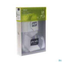 La Chevillère Push med soutient de manière prolongée l'articulation de la cheville et peut être utilisée dans toute une série de cas et de conditions. La chevillère est basée sur le concept du tape fonctionnel. Le niveau de pression ainsi que les limites de pronation/supination sont réglables. L'application de silicone garantit un bon maintien de la position. Des bandes de confort sont prévues autour des zones sensibles de la cheville, telles que le tendon d'Achille. La chevillère est confortable et facile à enfiler grâce au large cou-de-pied et à un heel-lock intégré. Technologie Sympress™ Le bandage est fabriqué en Sympress™, un matériel confortable de grande qualité. L'utilisation de microfibres donne une sensation de douceur à l'intérieur et permet à la peau de rester sèche. La Chevillère Push med est facile à appliquer et peut être lavée sans précaution particulière. INDICATIONS