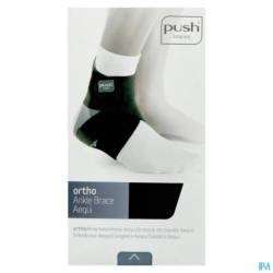 L'Orthèse de Cheville Push ortho Aequi est une chevillère efficace qui représente un compromis entre un excellent support mécanique de la cheville déficiente et un grand confort d'utilisation. Le soutien rigide se situe exclusivement sur la partie médiale de la cheville et présente une cavité au niveau de la malléole. La partie latérale est constituée de mousse synthétique qui s'adapte parfaitement à la forme individuelle de la cheville. L'orthèse est fixée au moyen d'une sangle diagonale. Les sangles élastiques appliquent une pression autour de la cheville. Le mouvement d'inversion et d'éversion de la cheville est limité tout en permettant adéquatement le libre déroulement du pied. Cela signifie que l'utilisateur ne ressent aucune gêne durant la marche et la course normales. La Push Aequi se porte au-dessus de la chaussette, et la stabilisation est optimale lorsque la chevillère est portée dans une chaussure fermée (à lacets). INDICATIONS