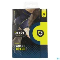 La Chevillière Push Sports 8 offre un excellent soutien en cas de légère luxation de la cheville ou lorsque celle-ci est (presque) rétablie. La bande élastique, qui enveloppe la cheville en formant un 8, stabilise la cheville et apporte une compression ferme et confortable, donnant à l'utilisateur une sensation de sécurité pendant la pratique du sport. Des bandes antidérapantes spéciales en TPU sont disposées en oblique sur l'avant du pied et autour du talon, augmentant la force élastique du bandage à ces endroits-là. Les bandes en TPU qui se trouvent des deux côtés de la cheville (étrier) assurent une sensation proprioceptive. La chevillère est faite d'un matériau très fin, qui absorbe l'humidité et sèche rapidement. La Chevillière Push Sports 8 peut aussi être portée sans chaussures. INDICATIONS