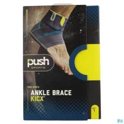 La Chevillière Push Sports Kicx offre la meilleure protection possible contre les luxations de la cheville pendant la pratique du sport. La Chevillière Push Sports Kicx est idéale aussi bien pour la reprise de l'entraînement que pour prévenir les blessures récurrentes en cas d'instabilité de la cheville. Les bandes fonctionnelles qui se croisent à l'extérieur de la cheville assurent une limitation efficace de l'inversion. Les bandes sont attachées à la partie renforcée intérieure du bandage et se déroulent de manière anatomique, vers l'extérieur de la cheville. En cas d'inclinaison du pied vers l'intérieur, les bandes se tendent et empêchent la cheville de se fouler. La pratique du sport reste tout à fait possible, car la Chevillère Push Sports Kicx permet la flexion plantaire et dorsale de l'articulation de la cheville. Le matériau élastique à performances élevées s'adapte à la morphologie de la cheville et apporte une pression confortable au niveau de l'articulation. Le bandage est ultrafin et peut donc parfaitement être porté dans des chaussures de sport étroites. Pour un confort optimal, le bandage peut être porté au-dessus d'une fine chaussette. Pour être utile, la Push Sports Kicx doit toujours être portée dans une chaussure. PROPHY-X Un système préventif de bandes " Prophy-X " se trouve à l'extérieur de l'articulation de la cheville, avec deux bandes qui se croisent. La bande Prophy-X dorsale (arrière) est perpendiculaire à l'axe de rotation inversion/éversion et empêche l'inclinaison du pied vers l'intérieur (entorse). La bande Prophy-X ventrale (avant) sert de contrepoids et résiste à la force qui est exercée sur la bande dorsale. Les bandes Prophy-X se croisent dans l'axe de rotation de l'articulation tarso-métatarsienne supérieure et n'empêchent donc pas le déroulement du pied. INDICATIONS