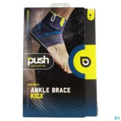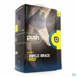 La Chevillière Push Sports Kicx offre la meilleure protection possible contre les luxations de la cheville pendant la pratique du sport. La Chevillière Push Sports Kicx est idéale aussi bien pour la reprise de l'entraînement que pour prévenir les blessures récurrentes en cas d'instabilité de la cheville. Les bandes fonctionnelles qui se croisent à l'extérieur de la cheville assurent une limitation efficace de l'inversion. Les bandes sont attachées à la partie renforcée intérieure du bandage et se déroulent de manière anatomique, vers l'extérieur de la cheville. En cas d'inclinaison du pied vers l'intérieur, les bandes se tendent et empêchent la cheville de se fouler. La pratique du sport reste tout à fait possible, car la Chevillère Push Sports Kicx permet la flexion plantaire et dorsale de l'articulation de la cheville. Le matériau élastique à performances élevées s'adapte à la morphologie de la cheville et apporte une pression confortable au niveau de l'articulation. Le bandage est ultrafin et peut donc parfaitement être porté dans des chaussures de sport étroites. Pour un confort optimal, le bandage peut être porté au-dessus d'une fine chaussette. Pour être utile, la Push Sports Kicx doit toujours être portée dans une chaussure. PROPHY-X Un système préventif de bandes " Prophy-X " se trouve à l'extérieur de l'articulation de la cheville, avec deux bandes qui se croisent. La bande Prophy-X dorsale (arrière) est perpendiculaire à l'axe de rotation inversion/éversion et empêche l'inclinaison du pied vers l'intérieur (entorse). La bande Prophy-X ventrale (avant) sert de contrepoids et résiste à la force qui est exercée sur la bande dorsale. Les bandes Prophy-X se croisent dans l'axe de rotation de l'articulation tarso-métatarsienne supérieure et n'empêchent donc pas le déroulement du pied. INDICATIONS