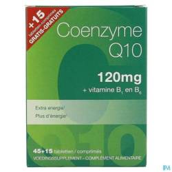 Coenzyme Q10 120mg est une formule de démarrage à haute dose à base de coenzyme Q10, enrichie en vitamines B1 et B6. Le coenzyme Q10 est un composant naturel présent dans notre alimentation et dont la production corporelle diminue avec l'âge.