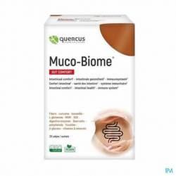 Quercus Muco-Biome® contribue au confort intestinal grâce à la présence d'extrait de curcuma (CurQfen® - curcumine libre liée à des fibres de fenugrec). Les fibres alimentaires de gomme de guar, d'acacia et de baobab viennent nourrir la flore intestinale. Le calcium, dérivé d'algues rouges (Aquamin®), soutient le fonctionnement normal des enzymes digestives. De plus, ce mélange en contient 7, en l'occurrence les enzymes digestives alpha-amylase, cellulase, protéase, lactase, lipase, bromélaïne et papaïne. L'encens (Casperome®) et la quercétine (Quercefit®) sont très bien assimilés grâce à la technologie phytosomique. La résine de boswellia favorise la santé intestinale. Oxxynea® contient plus de 150 polyphénols (d'olive, de raisin, de grenade, de thé vert, de pamplemousse, de myrtille et d'orange). Les polyphénols des myrtilles européennes participent à la protection des cellules contre le stress oxydatif. La Vitamin D3V® extraite d'algues, le sélénium et le zinc, tous sous leur forme la mieux absorbable, favorisent le bon fonctionnement du système immunitaire. La vitamine A participe à la préservation de la muqueuse (intestinale). Muco-Biome® présente une efficacité maximale grâce à l'adjonction de l'extrait Maritech® de Fucus vesiculosus riche en fucoïdane, de SOD bioactive issue d'une variété exclusive de melon français (Extramel®, 140 UI) et de β-glucanes de l'algue Euglena gracilis (BetaVia™ Complete).