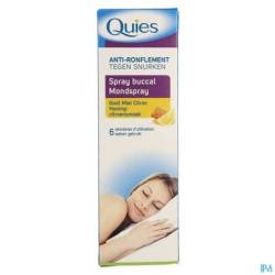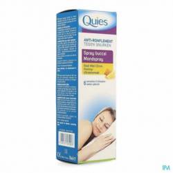 Le spray buccal anti-ronflement Quies agit directement sur les causes du ronflement : grâce à la gomme xanthane, il lubrifie le voile du palais et évite ainsi les vibrations lors de la respiration. Formulés sans huiles végétales, ses actifs maintiennent une bonne humidité du fond de la gorge tout au long de la nuit.