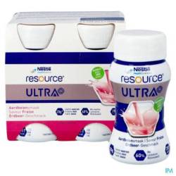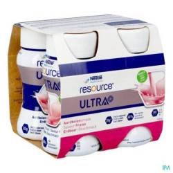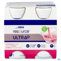 Resource Ultra+ est un aliment riche en protéines et en énergie. Une bouteille de 125 ml contient 20 g de protéines de lactosérum (28 % de kcal) et 281 kcal (2,25 kcal/ml). Nutrition à usage médical en cas de malnutrition ou de risque de malnutrition chez l'adulte.