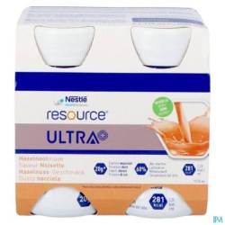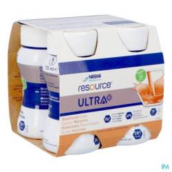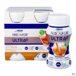 Resource Ultra+ est un aliment riche en protéines et en énergie. Une bouteille de 125 ml contient 20 g de protéines de lactosérum (28 % de kcal) et 281 kcal (2,25 kcal/ml). Nutrition à usage médical en cas de malnutrition ou de risque de malnutrition chez l'adulte.