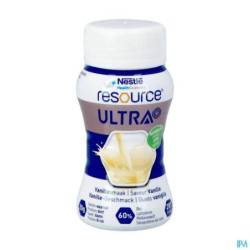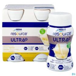 Resource Ultra+ est un aliment riche en protéines et en énergie. Une bouteille de 125 ml contient 20 g de protéines de lactosérum (28 % de kcal) et 281 kcal (2,25 kcal/ml). Nutrition à usage médical en cas de malnutrition ou de risque de malnutrition chez l'adulte.