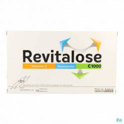 Une dose contient 1000mg de vitamine C*, de l'aspartate de magnésium et 4 acides aminés essentiels. Revitalose C1000 est destiné aux adultes et aux adolescents de plus de 12 ans. Prendre 1 à 2 doses par jour.