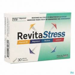 RevitaStress est un complément alimentaire à base de rhodiola qui favorise la résistance au stress. Le magnésium et la vitamine B6 contribuent à la réduction de la fatigue et au fonctionnement normal du système nerveux. Le zinc contribue au fonctionnement normal des fonctions cognitives. Lactium® est un hydrolysat de protéines de lait breveté issu de 10 années de recherche.
