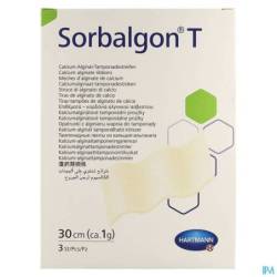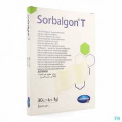 Pansement de couverture en fibres d'alginate de calcium. Sorbalgon® est également disponible sousforme de mèche pour les lésions profondes ; il est alors reconnaissable au T après le nom.