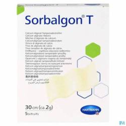 Pansement de couverture en fibres d'alginate de calcium. Sorbalgon® est également disponible sousforme de mèche pour les lésions profondes ; il est alors reconnaissable au T après le nom.