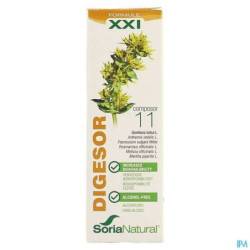 Composition par 3 ml: extrait fluide de gentiane (Gentiana lutea L, racine) (1,24 g), eau, humectant: glycérine, alpha-cyclodextrines (213 mg), gamma-cyclodextrines (172 mg), extrait fluide de camomille romaine (Anthemis nobilis L, fleurs) (168 mg), extrait fluide de fenouil (Foeniculum vulgare L, semence) (168 mg), extrait fluide de romarin (Rosmarinus officinalis L, feuille), extrait fluide de mélisse (Melissa officinalis L, feuille) (168 mg), bromélaïne (75 mg), huile essentielle de menthe (Mentha piperita L, feuille) (6 mg).