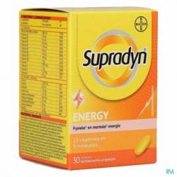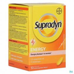 Grâce à une formule unique et cliniquement prouvée composée de 13 vitamines, 9 minéraux et du coenzyme Q10, Supradyn Energy vous aide à retrouver de l'énergie* quand vous en avez le plus besoin.