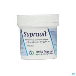 Ce produit ne contient pas de lactose, de gluten ni de conservateurs ou d'arômes.Supravit est un complexe multivitamines-minéraux hautement dosé avec un supplément de GINSENG - COENZYME Q 10 - SPIRULINE.