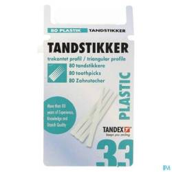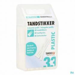 Cure-dents triangulaire en plastique pour nettoyer les espaces interdentaires inaccessibles à la brosse à dents.