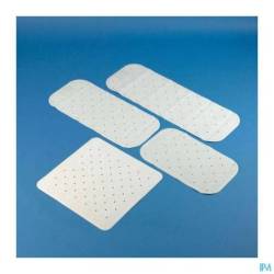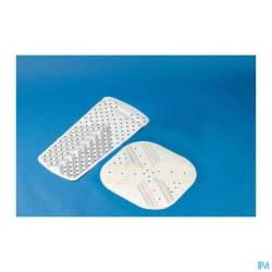 Tapis de bain/douche fait en caoutchouc naturel perforé. Le matériau est antifongique et antibactérien. Pourvu de petites ventouses et de perforations afin de permettre une évacuation rapide de l'eau. Il existe différentes grandeurs. Lavable à la main dans une savonnée tiède. Contient du latex.