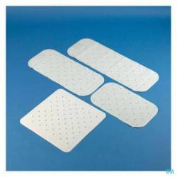 Tapis de bain/douche fait en caoutchouc naturel perforé. Le matériau est antifongique et antibactérien. Pourvu de petites ventouses et de perforations afin de permettre une évacuation rapide de l'eau. Il existe différentes grandeurs. Lavable à la main dans une savonnée tiède. Contient du latex.