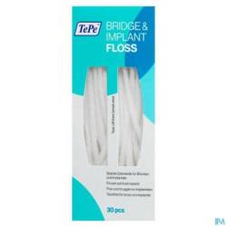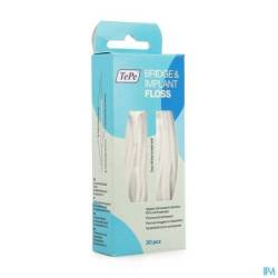 Le fil dentaire TePe Bridge & Implant est un fil épais et flexible, spécialement conçu pour le nettoyage des implants, des bridges et des appareils dentaires.