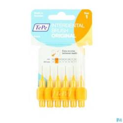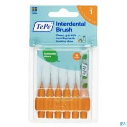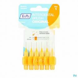 Une brosse interdentaire de TePe, conçue pour nettoyer les espaces entre les dents qu'une brosse à dents ordinaire ne peut atteindre. A utiliser quotidiennement pour garder les gencives, les dents et les molaires saines et fraîches.