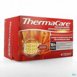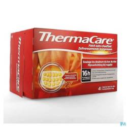 Le patch auto-chauffant ThermaCare offre un soulagement efficace et ciblé des douleurs musculaires et articulaires consécutives à une tension musculaire, un claquage, une courbature, une entorse ou à de l'arthrose. Il convient pour des douleurs de type chronique ou occasionnel. Il ne comporte pas d'actif médicamenteux.Un patch auto-chauffant : Le patch ThermaCare comporte de multiples alvéoles qui contiennent en leur coeur des agents thermoactifs à l'air, tel que le fer. Le réchauffement commence dès l'ouverture de la pochette, lorsque les alvéoles sont au contact de l'oxygène de l'air. La chaleur diffusée apaise la douleur. Un soulagement efficace et de longue durée : ThermaCare vous procure jusqu'à 16 heures de soulagement : 8 heures pendant que vous le portez, puis 8 heures après l'avoir ôté.