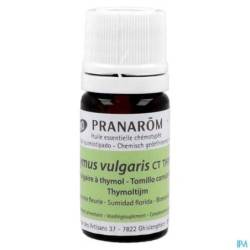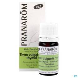 Sous arbrisseau vivace, pouvant atteindre 30 cm de hauteur. Il possède des petites feuilles lancéolées enroulées sur les bords. La tige est ligneuse et les rameaux sont ascendants. Les fleurs sont roses blanchâtres groupées en inflorescence dense. Le thymus vulgaris ct thymol est l'un des six chémotypes de thym identifiés par Passet, Granger et Vernet et al. Il est présent dans le sud de la France (essentiellement en Provence) sur un sol calcaire.