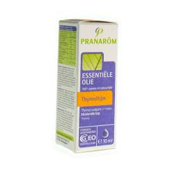 Sous arbrisseau vivace, pouvant atteindre 30 cm de hauteur. Il possède des petites feuilles lancéolées enroulées sur les bords. La tige est ligneuse et les rameaux sont ascendants. Les fleurs sont roses blanchâtres groupées en inflorescence dense. Le thymus vulgaris ct thymol est l'un des six chémotypes de thym identifiés par Passet, Granger et Vernet et al. Il est présent dans le sud de la France (essentiellement en Provence) sur un sol calcaire.