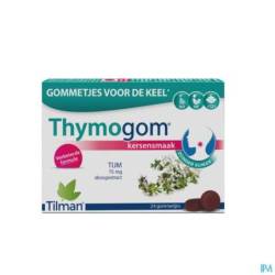 Les gommes pour la gorge Thymogom sont hautement concentrées en thym (75 mg d'extrait sec par gomme) et délicieusement aromatisées à la cerise. Le thym est apprécié pour son action adoucissante et calmante au niveau de la gorge.