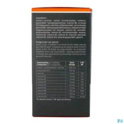 (Acétyl-L-carnitine, charge : cellulose microcristalline, agent d'enrobage : hydroxpropylcellulose, vitamine B8, coenzyme Q10 (ubiquinone), citrate de zinc, anti-agglomérant : dioxyde de silicium, agent d'enrobage : hydroxypropylméthylcellulose, anti-agglomérant : sels de magnésium des acides gras, vitamine B3, charge : phosphate dicalcique, vitamine B5, anti-agglomérant : acides gras, vitamine B6, vitamine B9, vitamine B1, colorant : oxyde de fer, vitamine B2, vitamine B12, humectant : glycérol.)