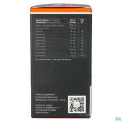 (Acétyl-L-carnitine, charge : cellulose microcristalline, agent d'enrobage : hydroxpropylcellulose, vitamine B8, coenzyme Q10 (ubiquinone), citrate de zinc, anti-agglomérant : dioxyde de silicium, agent d'enrobage : hydroxypropylméthylcellulose, anti-agglomérant : sels de magnésium d'acides gras, vitamine B3, charge : phosphate dicalcique, vitamine B5, anti-agglomérant : acides gras, vitamine B6, vitamine B9, vitamine B1, colorant : oxyde de fer, vitamine B2, vitamine B12, humectant : glycérol. )