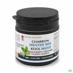 Vecteur Santé Charbon végétal 30 Gr - Blanchiment dentaire - 100% naturel à la menthe bioConseils d'utilisation : Appliquer une petite quantité de charbon sur la brosse à dents humide. Utiliser pendant 2 minutes deux fois par jour avant le brossage habituel avec du dentifrice. Pour les premières utilisations, il est conseillé d'utiliser le charbon tous les jours pendant 2 semaines puis en entretien 2 fois par semaine. Bien fermer après utilisation. Emballage 100% recyclable, sans bisphénol et sans phtalate. A utiliser dans les 12 mois après ouverture