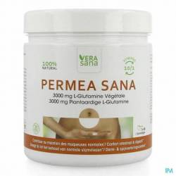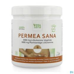 Soutenir la fonction de barrière de la muqueuse intestinale avec le Permea Sana. Le Permea Sana est l'un des 1ers complément alimentaire contenant 3000 mg de L-glutamine naturelle et non synthétique. Sa dose élevée de L-glutamine favorise le bon fonctionnement de la muqueuse intestinale. Celle-ci agit en synergie avec la vitamine B8 (biotine), le silicium de bambou, le zinc, la spiruline (chlorophylle), le curcuma (sans nanos/solvants), le triphala (régulateur du transit) et des enzymes digestives (papaïne et bromélaïne). Permea Sana est également Cleanlabel en terme d'additifs, garantissant une bonne tolérance.