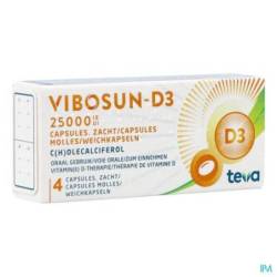 Vibosun-D3 contient l'ingrédient actif appelé " cholécalciférol " (vitamine D3), qui régule l'absorption et le métabolisme du calcium, ainsi que son incorporation dans le tissu osseux. Vibosun-D3 est utilisé pour prévenir et traiter une carence en vitamine D chez les adultes et les adolescents (enfants ≥ 12 ans). Vibosun-D3 est également utilisé chez des patients adultes en complément d'une thérapie spécifique de l'ostéoporose (perte osseuse), de préférence en association avec du calcium.