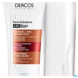 Les agressions chimiques, mécaniques & thermiques affectent profondément la structure capillaire et diminuent son taux de kératine. Les cheveux sont alors très abîmés : rugueux, ternes, fragiles… Kera-Solutions Masque 2 min. réparateur associe une formule micro-comblante Complexe Pro-kératine, afin de réparer et renforcer les cheveux après une utilisation. En combinaison avec Kera-Solutions Shampooing Reconstituant, il réduit instantanément les dommages capillaires de 60 %*.
