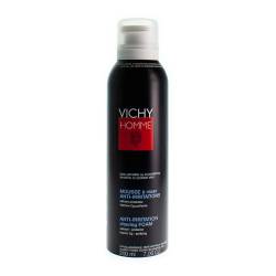 Vichy Homme Mousse à Raser - Anti-irritations a été spécialement conçu pour les hommes à la peau sensible ou présentant des problèmes de peau tels que poils incarnés, boutons dus au rasage, etc., ou qui ont des rougeurs ou des irritations après le rasage. La formule contient une association de calcium, de vitamine C glycolisée et d'acide salicylique, qui empêche l'échauffement de la peau pouvant survenir après le rasage. De plus, ce mousse à raser protège la couche hydrolipidique de la peau et prévient la sensation de frottement. Votre peau est protégée et intensément hydratée. RÉSULTATS : Laisse la peau confortable chez : 93 %*. Empêche l'échauffement de la peau chez : 87 %* et protège contre les irritations cutanées chez : 85 %*. Laisse un effet de peau hydratée chez : 87 %* et purifie la peau chez : 90 %*. *auto-évaluations par 20 hommes.