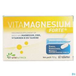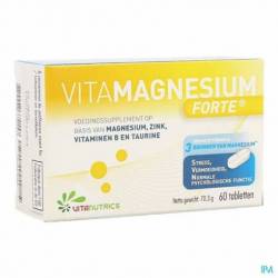 Carbonate de calcium, cellulose microcristalline, citrate de magnésium (22%), glycérophosphate de magnésium (22%), bisglycinate de magnésium (12%), taurine, sels de magnésium d'acides gras, bisglycinate de zinc, vitamines B2, B6, B12, Folates (vitamine B9), hypromellose, cellulose microcristalline, acide stéarique