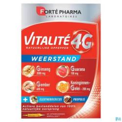 La formule Vitalité 4G Défenses se base sur le complexe d'actifs 4G, une synergie de 4 plantes idéalement dosées : Ginseng, Guarana, Gelée Royale et Gingembre. Ces actifs sont associés à de l'acérola, baie des Antilles riche en vitamine C, pour booster votre énergie. Deux ingrédients viennent compléter la formule pour stimuler le système immunitaire : L'éleuthérocoque : tonifiant général de l'organisme, il contribue au fonctionnement normal du système immunitaire. La propolis : produite par les abeilles, cette résine naturelle permet de protéger la ruche des agressions extérieures.