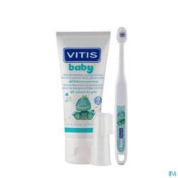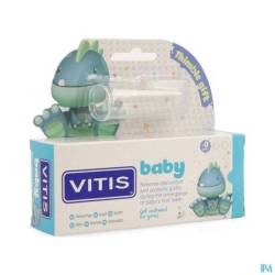 La poussée des premières dents est souvent inconfortable pour un bébé et peut s'avérer particulièrement douloureuse. Le baume gel VITIS Baby soigne et calme et les gencives. Avec la petite brosse pratique qui masse les gencives, il est très facile de faire pénétrer le gel tout en douceur. Il soigne, calme, protège et renforce la gencive. Le gel dentaire ne contient pas d'agent moussant (Laurylsulfate de sodium, SSL) et sa valeur abrasive est faible. Le baume gel VITIS Baby soulage rapidement et efficacement, en plus d'être livré avec une petite brosse de massage.