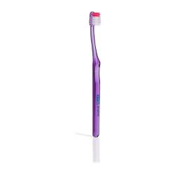 Brosse à dents à petite tête de brosse pour un usage quotidien. Les poils doux et arrondis conviennent parfaitement au nettoyage des gencives sensibles et/ou enflammées. La petite tête de brosse facilite le nettoyage à l'arrière de la bouche.