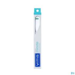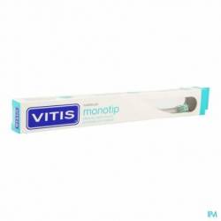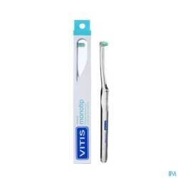 La brosse à dents VITIS Monotip est particulièrement adaptée au nettoyage des grands espaces interdentaires lorsqu'une ou plusieurs dents sont manquantes. Il convient également pour nettoyer les zones de la bouche difficiles à atteindre, comme les dents du fond. Utiliser deux fois par jour en plus du brossage régulier.