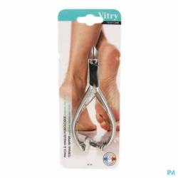 Cette pince Vitry, à double ressort, permet de couper les ongles forts.Elle a la particularité d'avoir un bec à la perpendiculaire de l'axe et des branches.