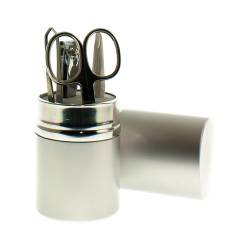 Set manucure avec ciseaux à ongles, coupe-ongles, limes à ongles en pinces à épiler mors biais dan un etui pratique.