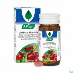Cranberry Monarda de A.Vogel contient des extraits de canneberges (cranberry), de verge d'or (solidago virgaurea) et de bergamote (monard didyma), des plantes connues pour leur effet positif sur les voies urinaires.