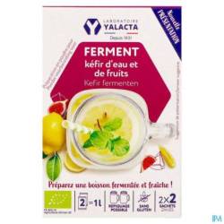 pour kéfir d'eau et de fruits et compléter avec le reste du litre d'eau minérale ou de source. Ajouter ensuite le jus d'un citron et 1 ou 2 fruits secs (figue, abricot, etc.). Agiter et fermer la bouteille. Laisser fermenter pendant 48 heures à température ambiante (min. 20-25°C). Un précipité blanchâtre peut se former et une opalescence peut apparaître. Lorsque la fermentation est terminée, verser avec précaution et sans agitation les ¾ de litre de liquide dans une deuxième bouteille en verre, la fermer hermétiquement et la mettre au réfrigérateur pendant au moins 1 jour. La fermentation se poursuit et le kéfir devient légèrement gazeux. À déguster frais.