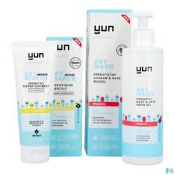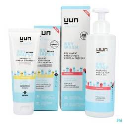 Gel lavant corporel et capillaire BBY PREBIOTIC : Appliquer sur la peau et/ou les cheveux humides et rincer. Utilisez le gel lavant corporel et capillaire BBY PREBIOTIC en combinaison avec les produits BBY de YUN pour une protection microbiologique continue.